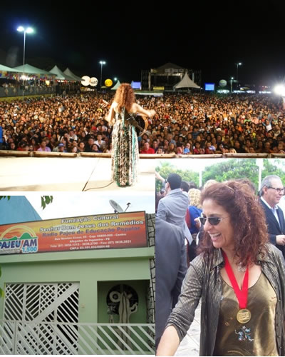 Minha Historia by jocelyne@uol.com.br abr 6, 2025 0 Comment Encontros e reencontros, viagens No centenário da minha cidade Afogados da Ingazeira/PE, dia 1º de julho de 2009, recebi a Comenda expressão centenário na área cultural. Foi um momento de reencontro com meu povo, meus amigos, meus vizinhos e com as dez mais personalidades que também receberam a comenda por sua contribuição no desenvolvimento da cidade. E como cantora gosta de cantar, eu peguei meu violão e cantei como sempre fiz na minha adolescência nesta cidade, cantei todas aquelas músicas que marcaram minha carreira para mais de 20.000 pessoas, que cantaram e se emocionaram comigo. Com certeza um momento de grande emoção. Enquanto a cidade Afogados comemora 100 anos, a Rádio Pajeú completa 50 anos. Já contei que essa rádio foi a minha grande formação e influencia musical. Com ela, aprendi muito. No Rio de Janeiro, dividi o palco com cantora portuguesa Rosa Madeira, no projeto Nossa Língua Nossa Música da curadora Jocelyne Aymon e produtora Brasil Festeiro. Um intercâmbio musical internacional com cantoras de países de língua portuguesa. Adorei participar desse grande encontro. << Anterior | Índice | Próxima >>